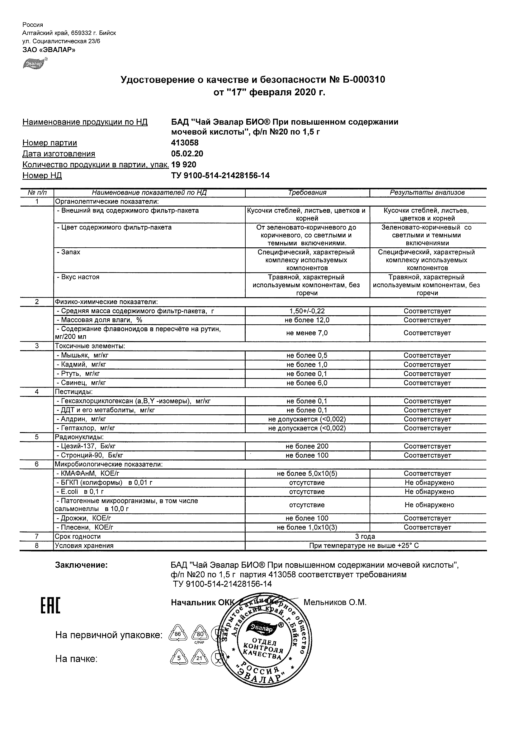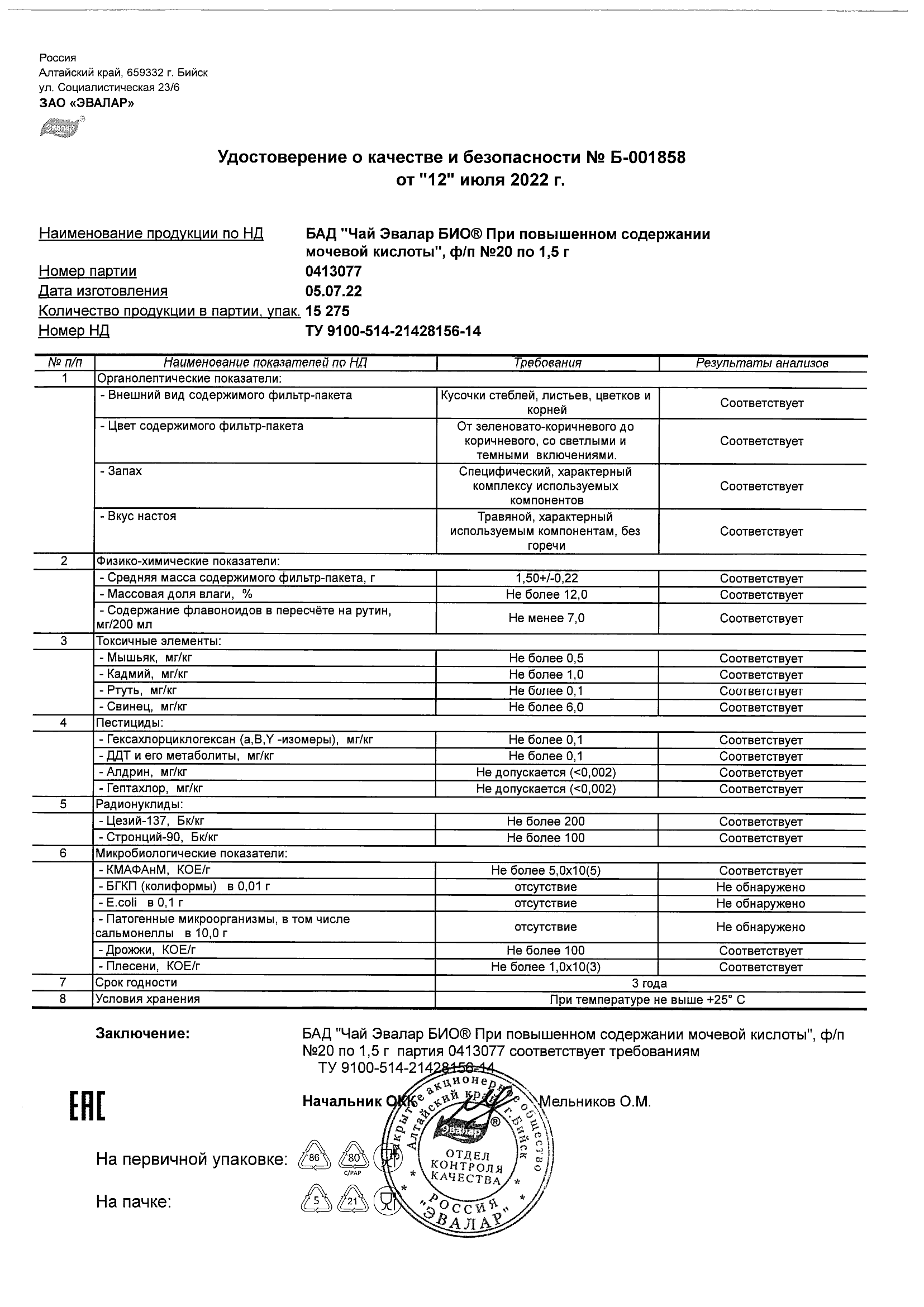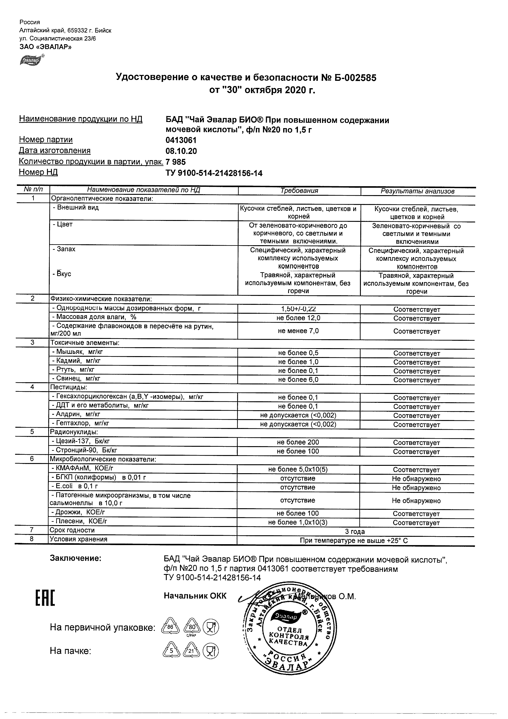 Index of /docs/chaj jevalar bio pri povyshennom soderzhanii mochevoj kisloty, f-p N20 po 1,5 g (s24)/