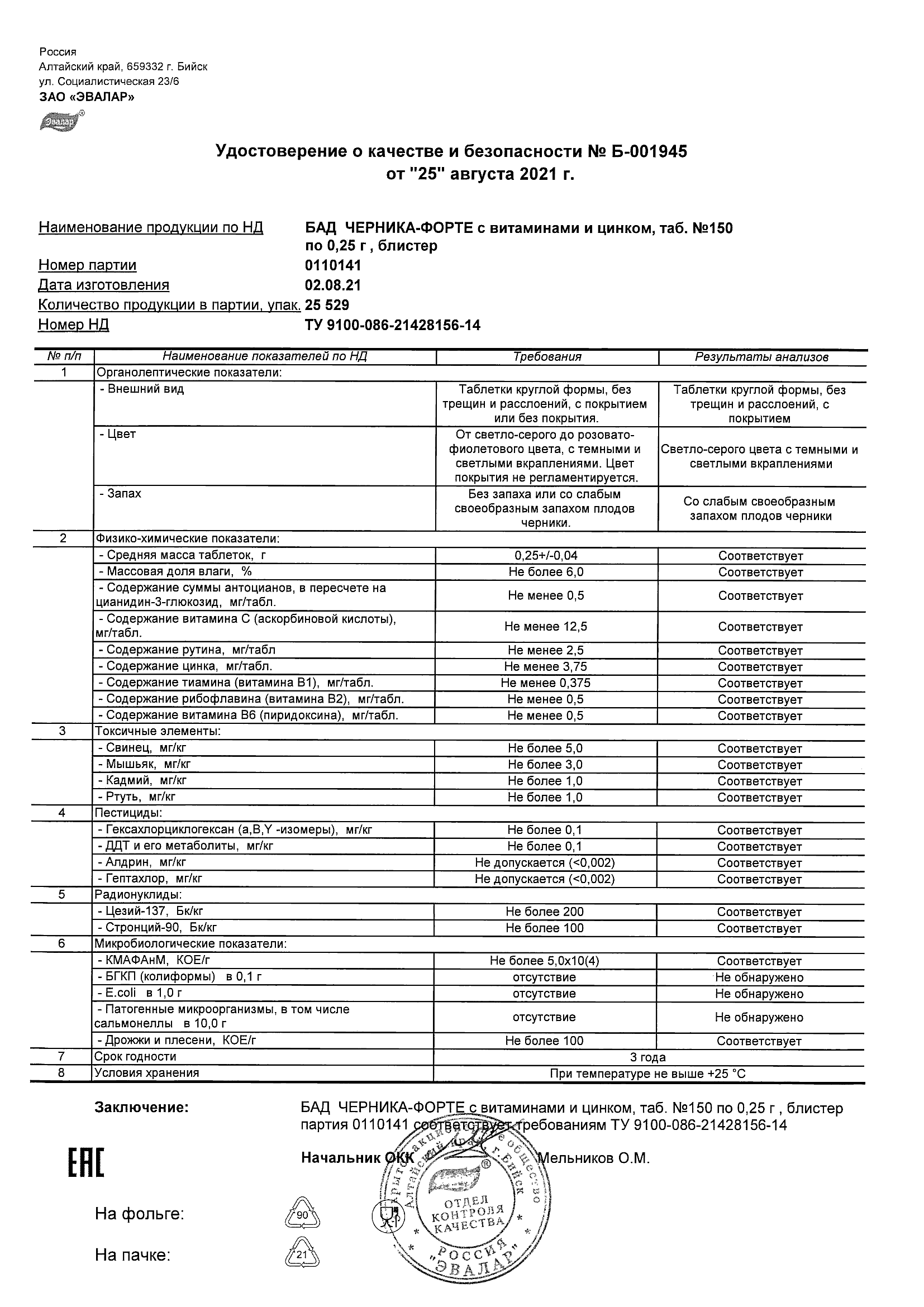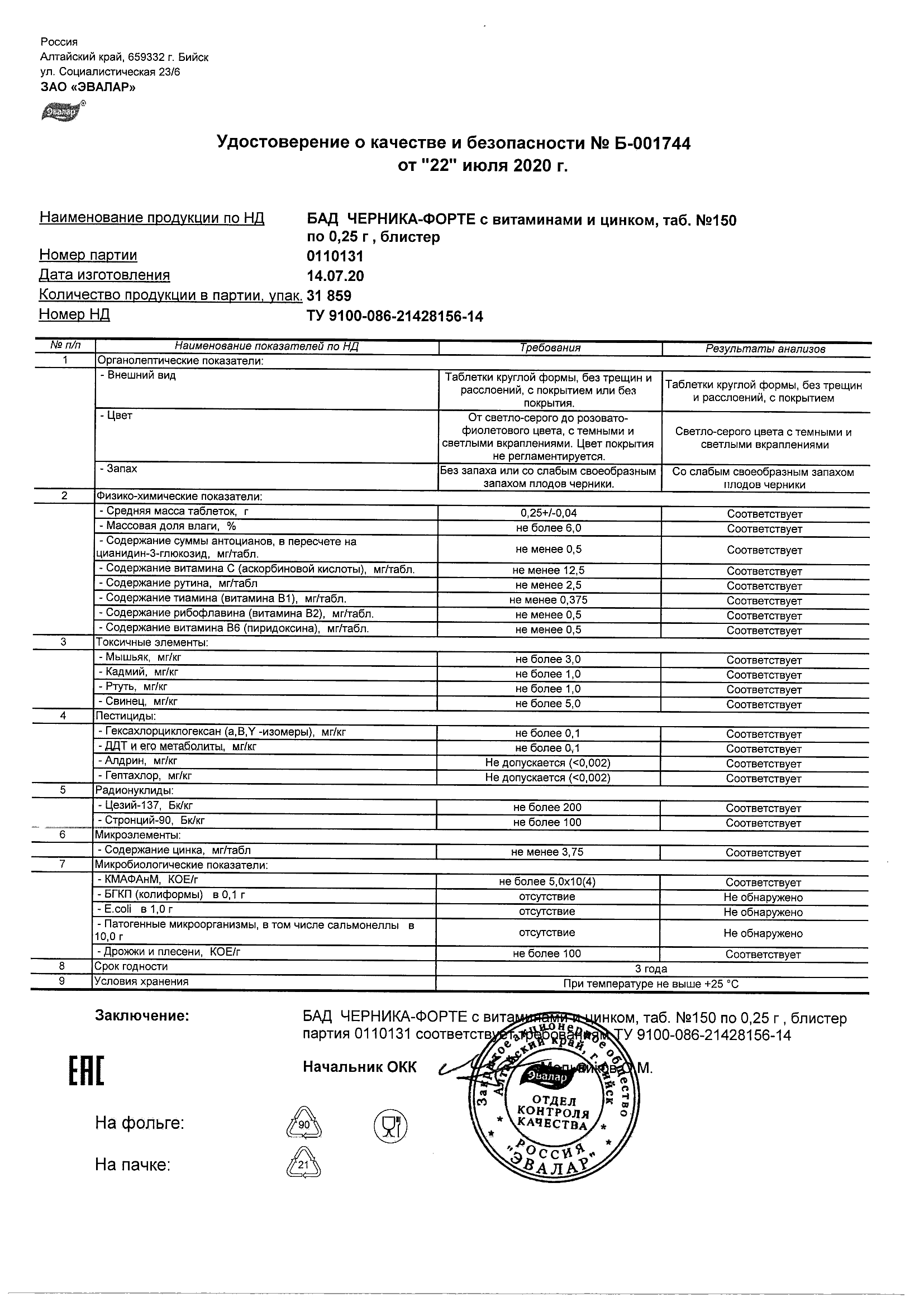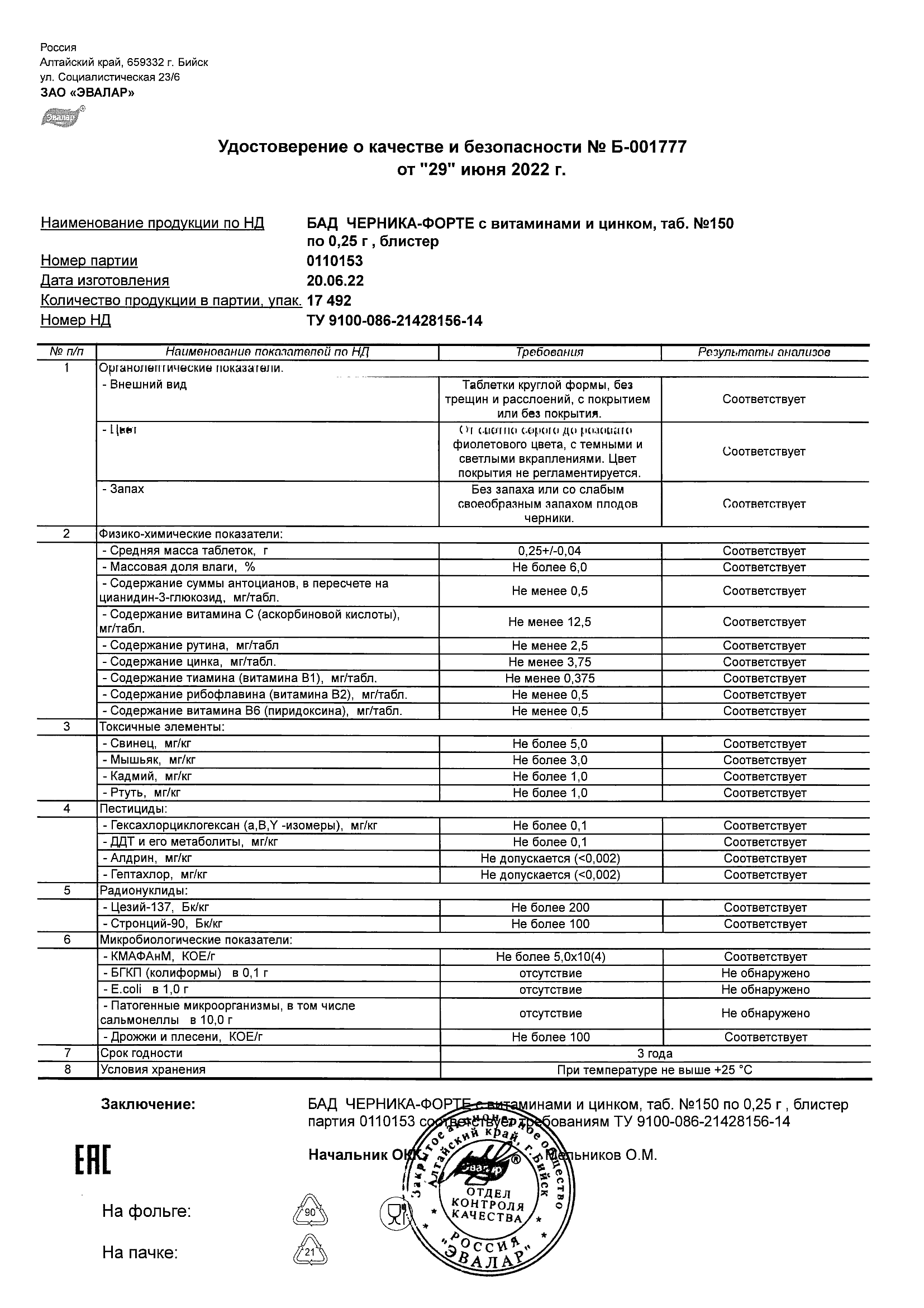 Index of /docs/chernika-forte s vitaminami i cinkom, tabN150 po 0,25 g blister/