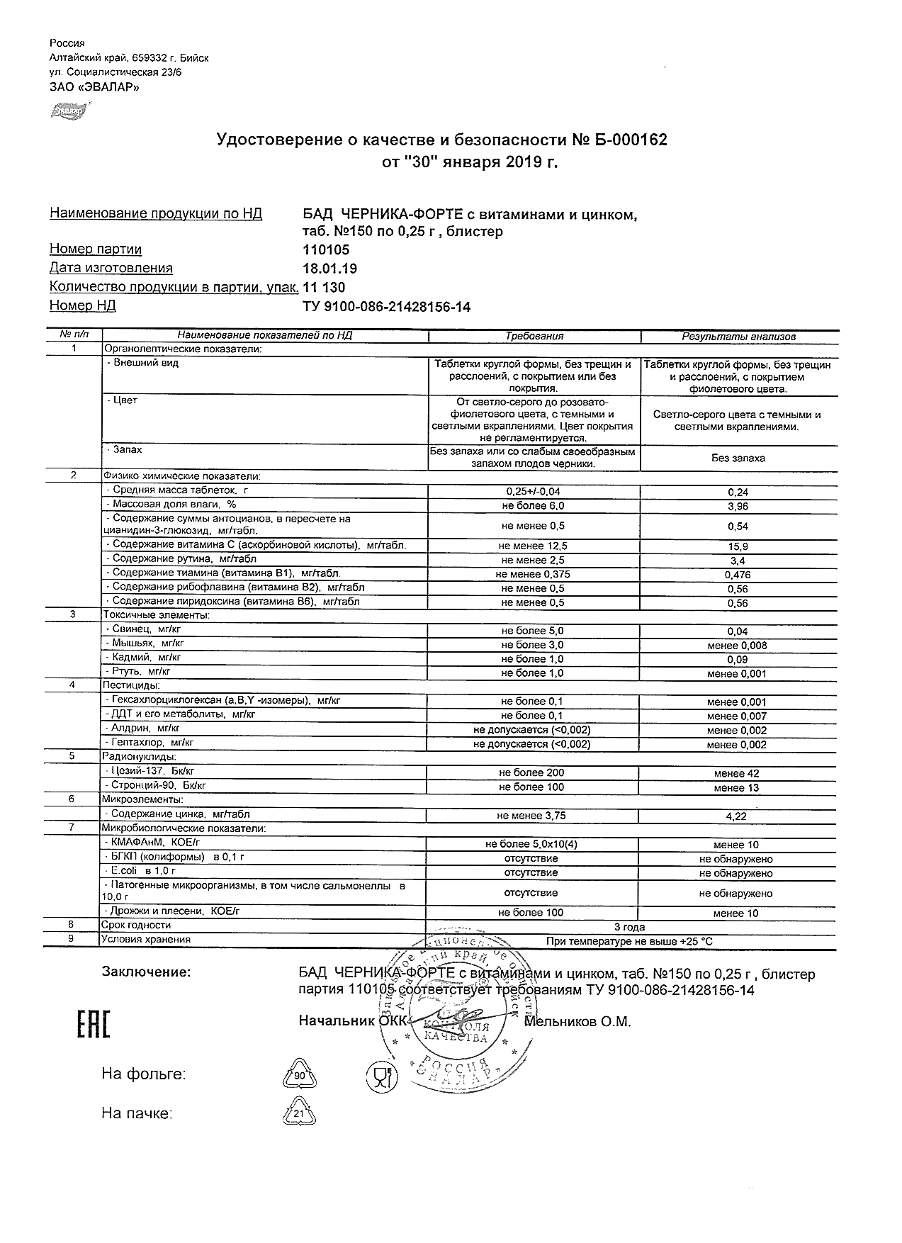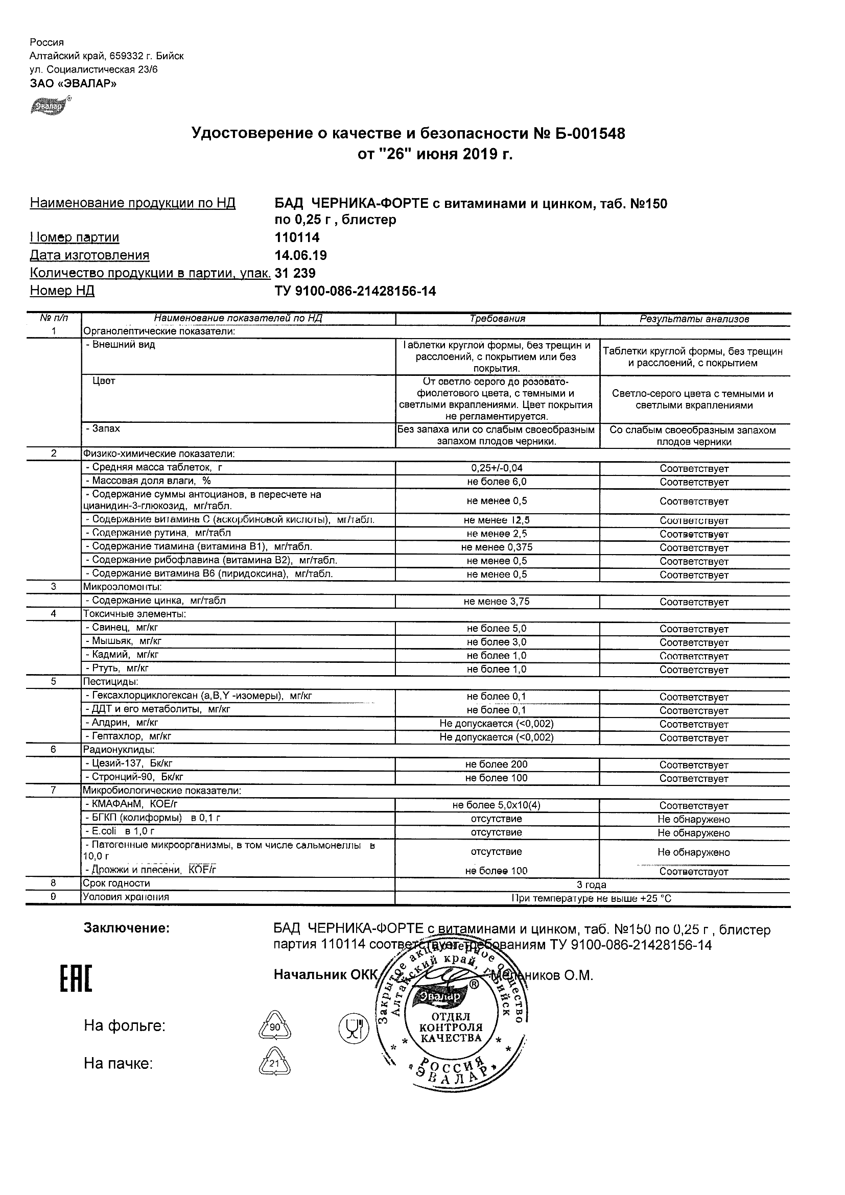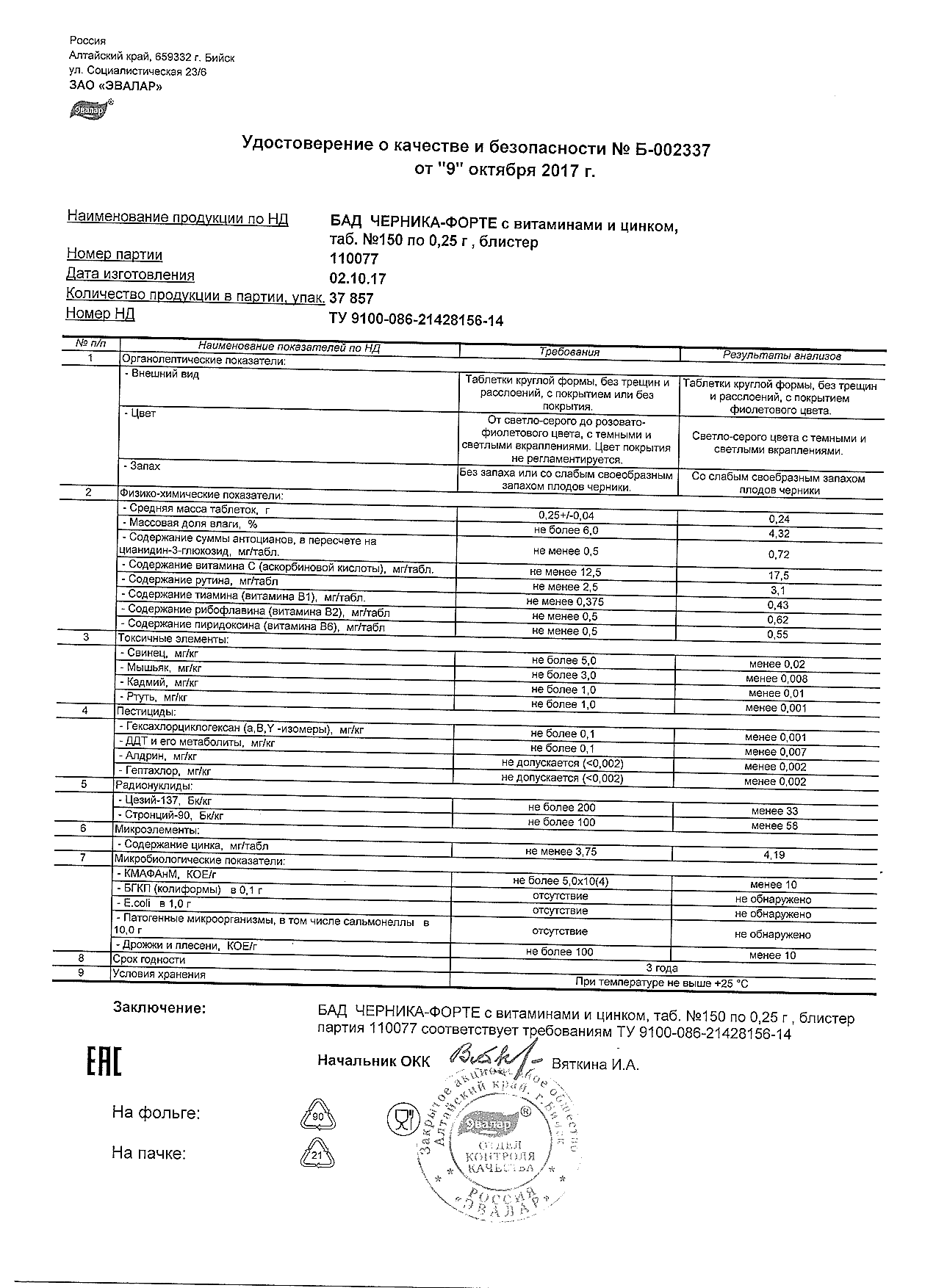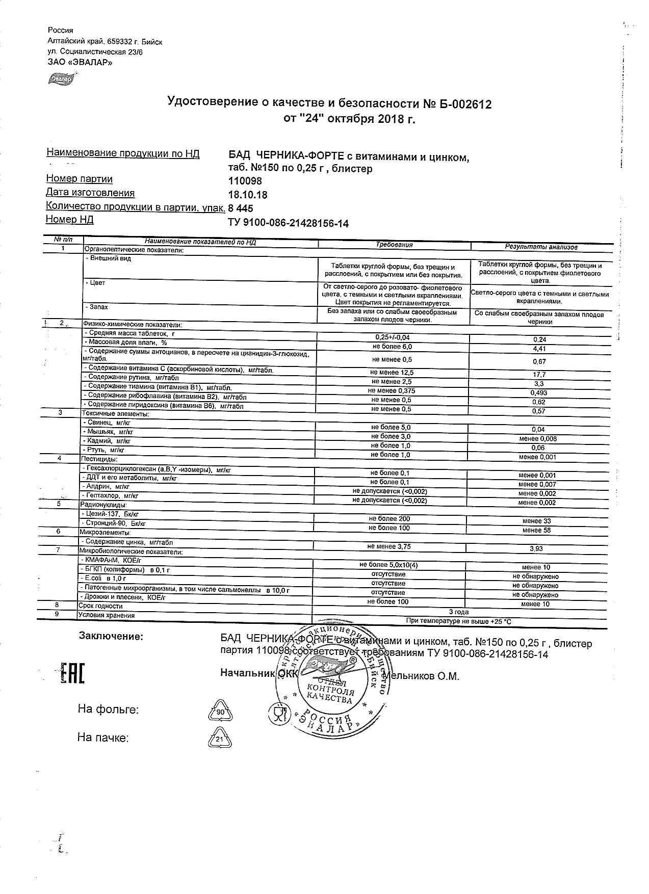 Index of /docs/chernika-forte s vitaminami i cinkom, tabN150 po 0,25 g blister/